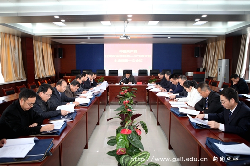 11月25日下午4时20分,中国共产党甘肃政法学院第二次代表大会主席团第一次会议在干训楼5楼视频会议室召开,会议由宋秉武主持。