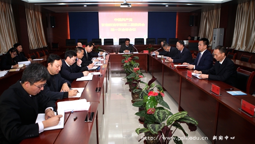 下午5点30分,中国共产党甘肃政法学院第二届委员会在干训楼视频会议室召开第一次全体会议。新当选的11名第二届校党委委员出席会议,新当选的纪委委员列席会议。会议由宋秉武主持。